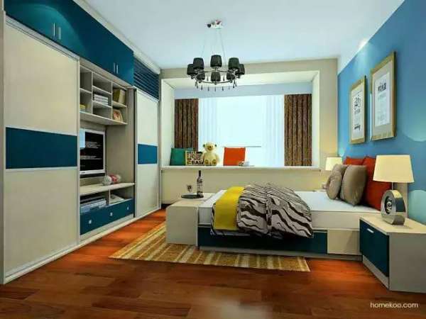 藏在衣柜里的電視柜?恩,準確來說是二合一的設計吧!用趟門一合上就能保持房間墻完整性,感覺十分新穎。