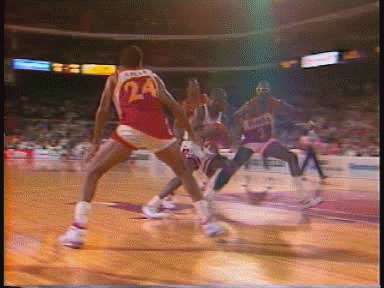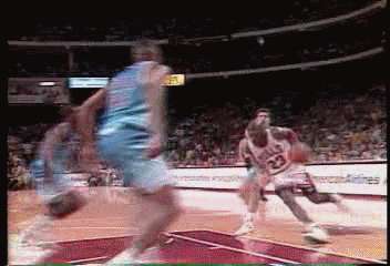 防守人員想蓋帽,但根本等不到喬丹出手的機會