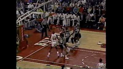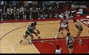 四個人過來封蓋喬丹,喬幫主橫向飄移將球打進