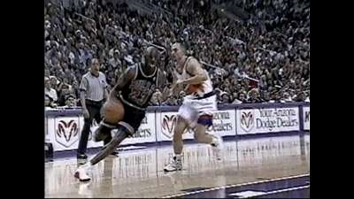 原地瞬間暴扣,防守人員險受胯下之辱,這球喬幫主的爆發力、靈氣顯現出來