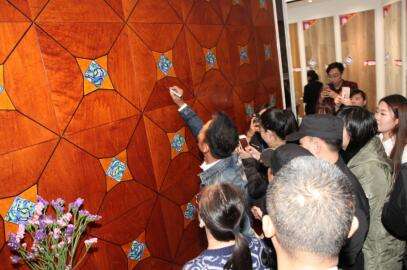 匠星任達(dá)華進(jìn)生活家地板店面簽字留念
