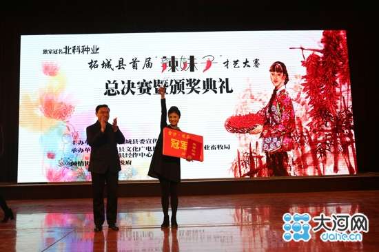 縣委副書記、縣長路標在致辭中指出,柘城縣三櫻椒已有40年的栽培歷史,形成了區(qū)域化、規(guī)模化種植格局,被國家農(nóng)業(yè)部命名為“中國三櫻椒之鄉(xiāng)”。今年以來,縣十二次黨代會作出了擦亮“中國三櫻椒之鄉(xiāng)”名片的決策部署,把持續(xù)做強做大辣椒產(chǎn)業(yè)作為農(nóng)業(yè)結(jié)構(gòu)調(diào)整和發(fā)展特色農(nóng)業(yè)的戰(zhàn)略重點。我縣成功舉辦首屆辣椒文化節(jié),榮獲“中國辣椒之鄉(xiāng)”最具影響力網(wǎng)絡品牌評選第一名,成功創(chuàng)建河南省出口三櫻椒質(zhì)量安全示范區(qū),并與全國辣椒產(chǎn)業(yè)大會組委會簽訂了戰(zhàn)略合作協(xié)議,今年將在我縣舉辦第十二屆全國辣椒產(chǎn)業(yè)大會。這將把我縣“中國三櫻椒之鄉(xiāng)”的品牌叫得更響、擦得更亮。本次辣妹子才藝大賽總決賽是我縣開展首屆辣椒文化節(jié)的一項重要內(nèi)容,也是我縣精神文明建設的一次成果大展示,必將對發(fā)展壯大辣椒產(chǎn)業(yè)、擦亮椒鄉(xiāng)品牌產(chǎn)生積極的推進作用。