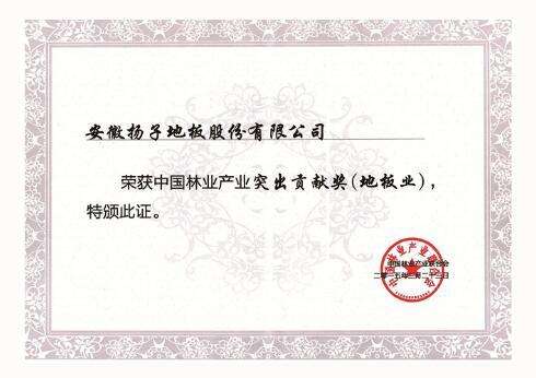 揚子地板榮獲“中國林業(yè)產(chǎn)業(yè)突出貢獻獎(地板業(yè))”,該獎項是我國林業(yè)產(chǎn)業(yè)界的最高獎,充分肯定了我公司在林業(yè)產(chǎn)業(yè)做出的努力。
