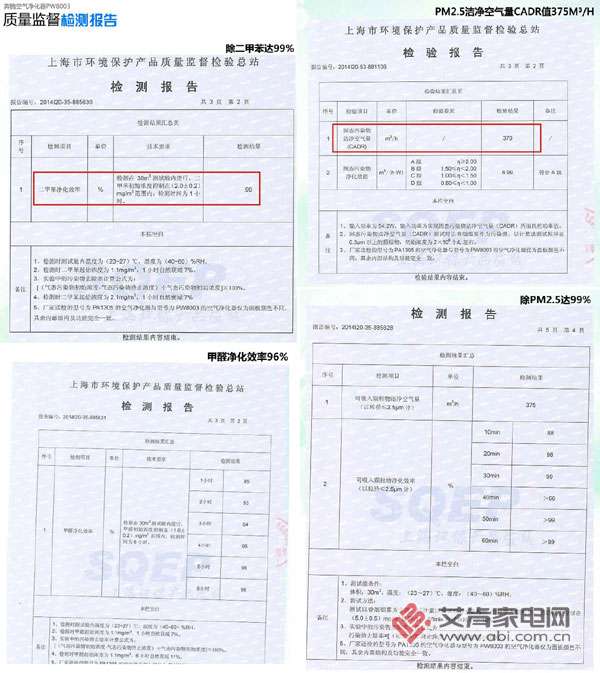 奔騰PW8003空氣凈化器的各項(xiàng)檢測(cè)報(bào)告