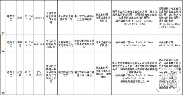 千龍網(wǎng)北京1月5日訊江蘇省工商局網(wǎng)站日前公布2016年上半年全省流通領(lǐng)域小家電商品質(zhì)量抽檢結(jié)果,共計(jì)抽檢100批次,79批次合格,21批次不合格。榮事達(dá)一款電熱水壺上榜,不合格項(xiàng)目為插頭插腳長(zhǎng)度。