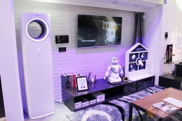 除了智慧廚房,在智慧客廳內(nèi),你可以通過手機隨時查看家中電器的運行狀態(tài),并可以遠程開啟空調(diào)、熱水器;在家的時候,家電的運行狀態(tài)及各類生活信息,可以在電視上實時顯示,比如洗衣機洗完衣服,電視就會自動彈出提示信息;Ubot還會自動檢測空氣,并主動開啟空調(diào),調(diào)整溫度。在智慧浴室內(nèi),刷牙時可以通過鏡子查看當天的天氣預(yù)報和新聞;洗澡前,魔鏡可以監(jiān)測浴室溫度、濕度以及亮度,根據(jù)用戶需求進行調(diào)整;如果你是愛美的女士或者愛運動的男士,還可以通過魔鏡的健康美容功能檢查自己的皮膚和身體狀況。