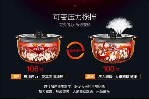 除了加熱技術(shù),對鍋內(nèi)壓力的掌握也是控制火候的重要手段。美的電飯煲業(yè)內(nèi)首創(chuàng)的可變壓力技術(shù),可讓米飯實(shí)現(xiàn)充分翻滾,通過加壓提高溫度,激發(fā)大米的甘甜粘糯,壓力驟降,形成突沸,讓大米舞動跳躍,味道更誘人。
