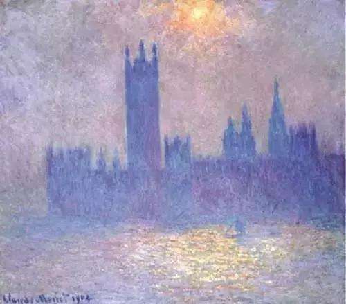 1889年秋天,當(dāng)克勞德?莫奈到倫敦去看他的兒子米歇爾,倫敦城市建筑在霧與霾中隱隱綽綽的景象,令莫奈的興趣重新燃起,要將這種特殊光效和色調(diào)的細(xì)微差別表現(xiàn)在畫布上。這種大霧天的景象,給莫奈的繪畫帶來(lái)了非常重要的靈感。他把這種靈感與從霧中學(xué)到的手法,用到了之后的創(chuàng)作中,最重要的,是《睡蓮》系列。