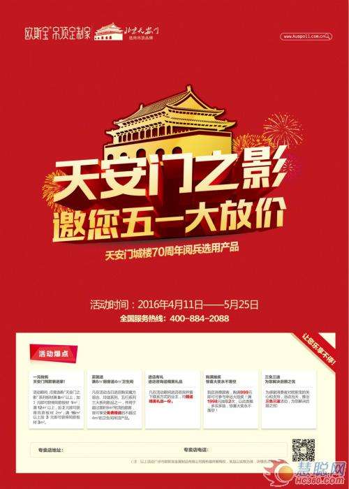 活動(dòng)時(shí)間:2016年4月25日――5月25日。具體活動(dòng)詳情請(qǐng)前往歐斯寶全國專賣店進(jìn)店咨詢