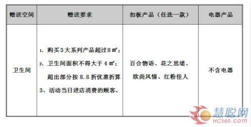 凡在活動(dòng)當(dāng)日進(jìn)店購買魔方組合、玲瓏系列、五行系列三大系列新品之一,并用于超過面積8?吊頂?shù)念櫩停钥上硎苊赓M(fèi)贈(zèng)送的不超過4?的衛(wèi)生間吊頂產(chǎn)品: