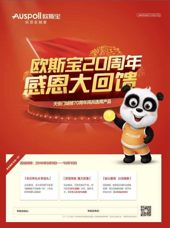 定制逐漸成為一種潮流,歐斯寶20周年品牌慶感恩回饋活動,滿足了消費者對個性家居的追求,這不僅遵循了行業(yè)發(fā)展規(guī)律,更是歐斯寶對“吊頂定制家”的定位的完美詮釋,將高品質的產品與定制化服務精準傳達給用戶,樹立良好品牌形象,打造世界領先品牌。