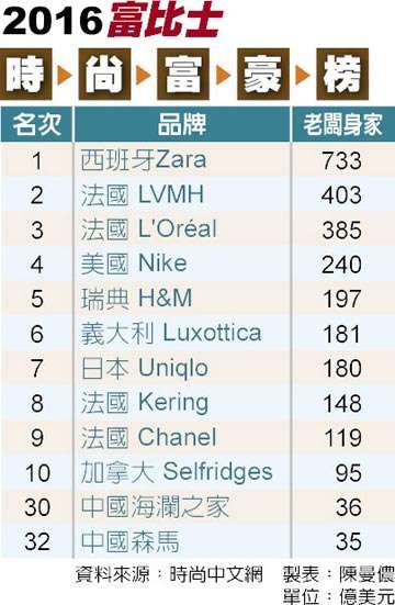 提到國(guó)際知名服裝品牌,大家都能朗朗上口的Zara、LV等,大多是歐美品牌的天下,日前《富比士》排行榜也做了時(shí)尚品牌富豪榜,很有趣的是,以「創(chuàng)富」來說,大多是歐洲品牌的天下,因?yàn)闅W洲品牌大多是家族企業(yè),美國(guó)品牌則大多是上市公司。
