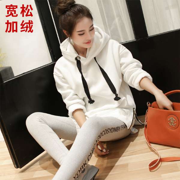 韓版秋冬純色大碼衛(wèi)衣女套頭連帽寬松休閑學(xué)生外套加絨保暖上衣潮
