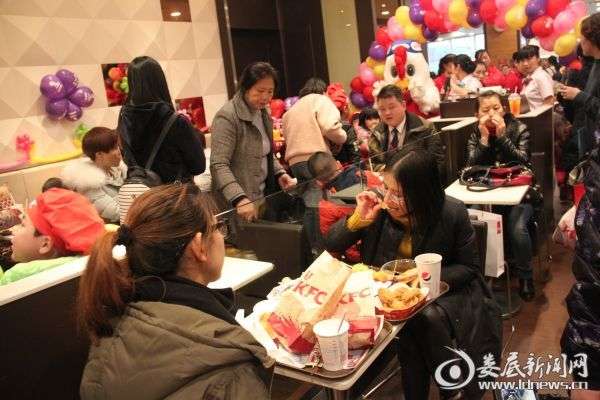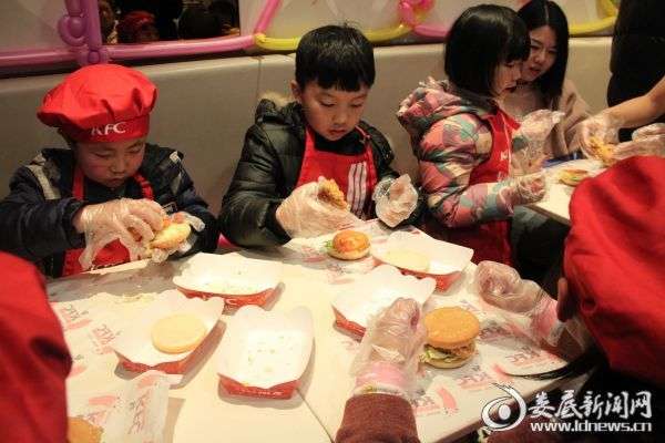 (“小偵探”們排隊準備進入肯德基餐廳后廚一探“雞”密)