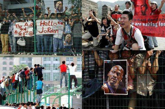 當年喬丹乘坐私人飛機前來,5月19日由于現(xiàn)場有差不多上萬人等候怕場面失控所以并未現(xiàn)身,一直到5月20日籃球之神第一次出現(xiàn)在中國的土地上,參觀了故宮、長城。現(xiàn)場球迷早已難掩興奮之情,有些球迷喜極而泣,現(xiàn)場球迷夾道相迎。