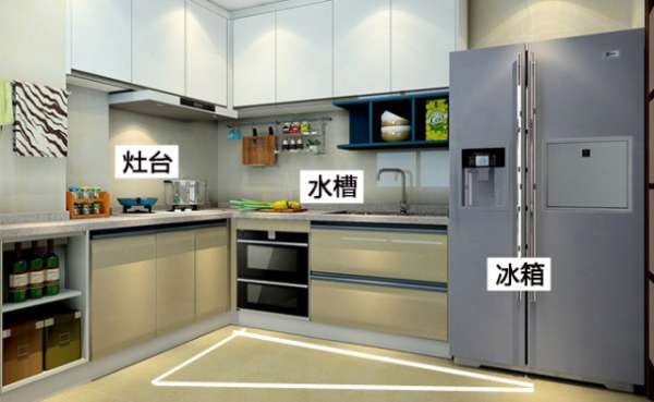 ,而且實(shí)踐證明冰箱靠近水槽、三角線三邊長總和<6米,操作最高效,