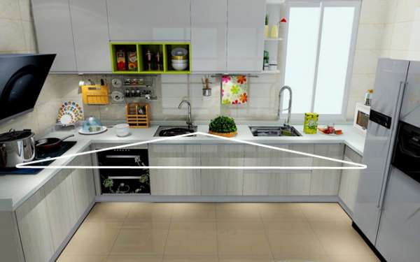 冰箱、水槽、灶臺(tái)之間成三角路線是最好走的,這也就是設(shè)計(jì)師說的