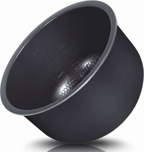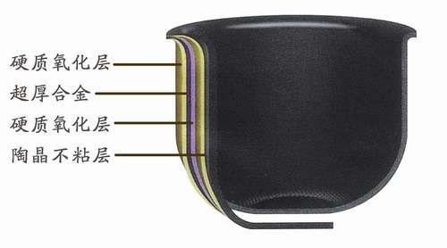 再說陶晶厚釜內(nèi)膽。陶晶內(nèi)膽由兩個硬質(zhì)氧化層、一個超厚合金層、一個陶晶不粘層四層復(fù)合而成,堅固不變形;鍋底特殊的球面設(shè)計導(dǎo)熱均勻節(jié)能省電;陶晶不粘層就算用鋼絲球擦都不脫落,而且耐高溫,可以明火蒸煮。