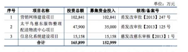 太平鳥首次將發(fā)行5500萬股,占總股本的比例不超過20%。募投資金將主要聚焦于營銷網(wǎng)絡建設、太平鳥慈東服飾整理配送物流中心以及