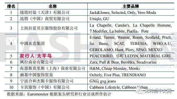 的企業(yè)只有五家,除太平鳥外,其余四間分別為國際知名服飾巨頭綾致、迅銷中國、Zara中國、H&M中國。