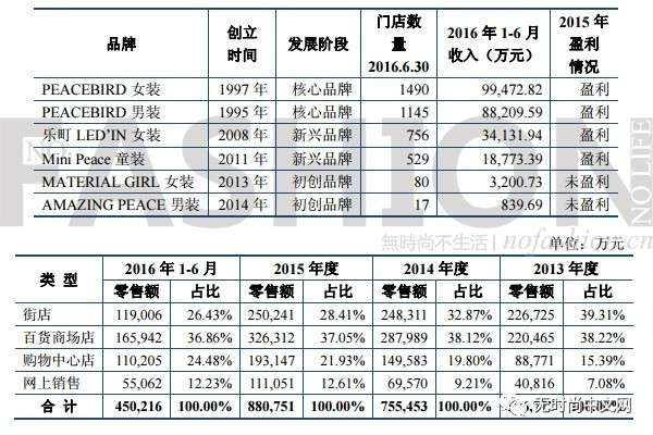 太平鳥過去三年半各品牌、渠道表現(xiàn)