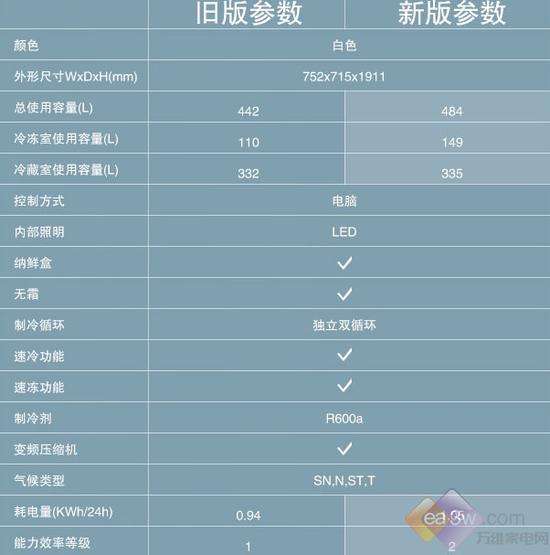 冰箱擁有484升大容量,其中冷藏室335升,冷凍室149升,可全方位滿足大量食材的保鮮需求。