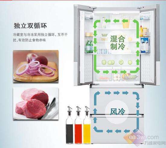 冰箱采用混合冷動力制冷,冷藏保濕保鮮,冷凍風(fēng)冷無霜。冷藏室與冷凍室采用獨(dú)立循環(huán),互不干擾,有效防止食物串味。冷凍室采用風(fēng)冷技術(shù),讓你告別冰霜困擾,儲存多種食物。