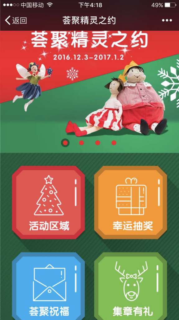 “薈聚精靈之約”以社交方式快速推廣,傳播效率大幅提升,以個人輻射家庭,形成光環效應,使更多人了解并參與購物中心的不同活動。用戶甚至可以發送帶有動畫效果的祝福信息并由購物中心大屏幕來傳達心意,這種人性化的服務體驗,與宜家集團的理念渾然天成。