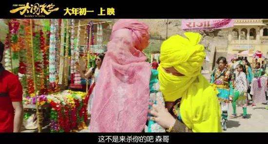 還沒來得及欣賞神秘的印度,電影畫風突變四人陷入開掛般的追逐冒險中囧態(tài)百出,爆笑連連