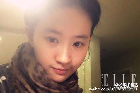 劉亦菲這張素顏的確很美,頭頂上的光源也是恰到好處起到了濾鏡的效果。