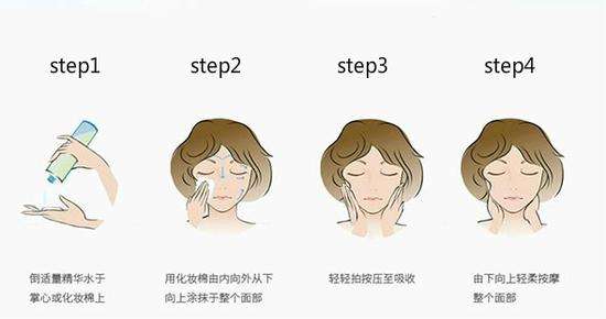 日護理:最簡單的辦法是每晚潔面后用化妝棉蘸取化妝水順著肌膚的紋理輕輕擦拭: