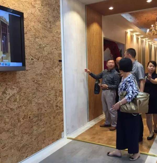 軟木的應(yīng)用不止于做畫,還可做包、做燈、做鞋子、做帽子、做墻紙、做地板等。圖為得高國(guó)際精品健康家居福州總經(jīng)理在向大家介紹風(fēng)格各異的軟文地板。