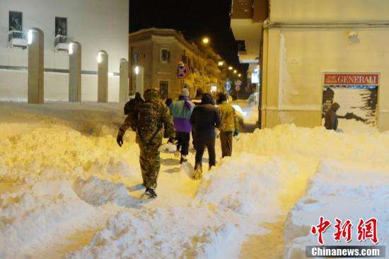 意大利南部城市被大雪覆蓋,意大利民眾在南部城市的大雪中出行,民眾在雪中拍照。