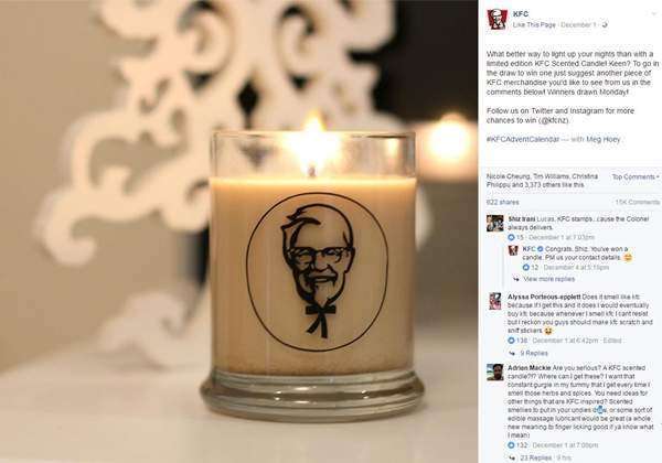 你不禁要問:肯德基送蠟燭干嘛?好歹也應該是10 個香辣雞腿堡之類能吃的東西吧?然而幾天后,當獲勝者點燃這支看似普通的蠟燭,房間里突然彌漫起炸雞的氣味……