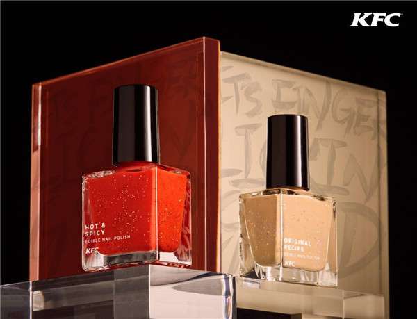 肯德基官方的意思是:我知道我們家的炸雞太好吃了,讓你特別想把手上沾的渣渣都舔了,用上這款指甲油,就放心大膽地舔手吧,我們不會笑話你的。