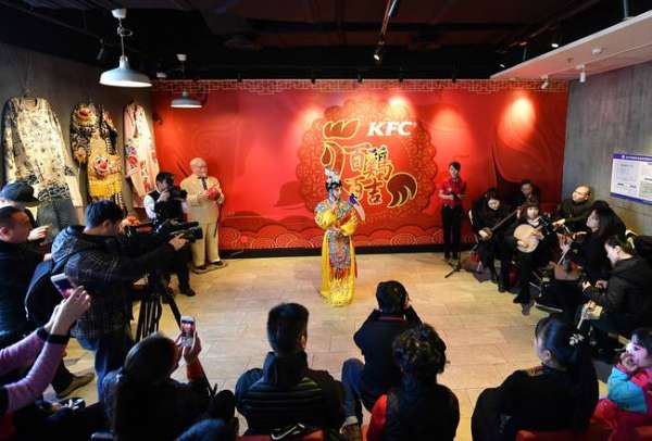 院,在肯德基前門京劇臉譜主題餐廳舉辦“百雞百吉”京腔京韻主題活動,以濃濃北京味兒,致敬國粹,歡度小年。餐廳內展示著臉譜圖案,刀槍劍戟,蟒袍盔靴,來自國家京劇院的非物質文化遺產專家向到店的大小朋友們介紹了京劇的起源與發展,一場國粹經典藝術主題盛會在餐廳上演。由票友演唱的著名京劇曲目《貴妃醉酒》,由來自國家京劇院的京劇大師演繹的《霸王別姬》,精彩表演引來觀眾陣陣喝彩,整個餐廳在小年當天洋溢著濃郁的中國風。