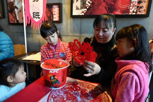 小朋友在肯德基餐廳體驗傳統剪紙藝術