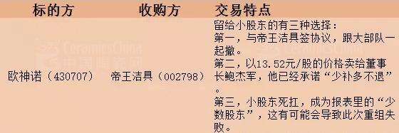 依照歐神諾停牌前10-11元的價(jià)格,13.52元/股的回購(gòu)價(jià),已然與帝王潔具并購(gòu)歐神諾對(duì)應(yīng)的每股價(jià)格一致,小股東若能達(dá)成協(xié)議,明顯“劃得來(lái)”,不失為上策。
