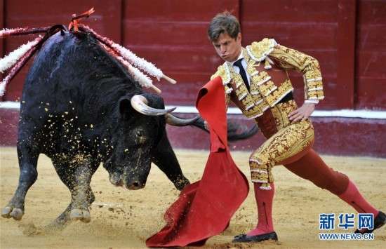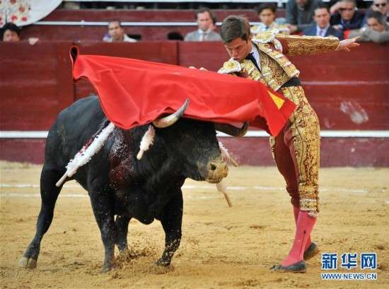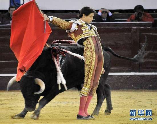 1月22日,在哥倫比亞波哥大,西班牙斗牛士洛佩斯進(jìn)行斗牛表演。哥倫比亞斗牛節(jié)在波哥大圣瑪麗亞斗牛場(chǎng)舉行。 新華社/西霸