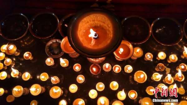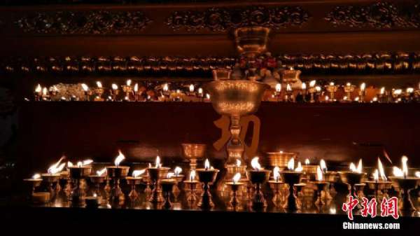 1月28日,迎來中國傳統節日春節的大年初一。中國唯一的裕固族自治縣甘肅肅南裕固族民眾禮佛燒香祈福,無數酥油燈搖曳閃爍,酥油花燈惟妙惟肖,寄托了民眾對新年的美好愿望。武雪峰 攝