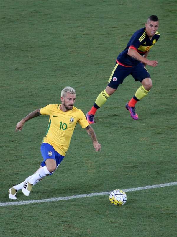 1月25日,巴西隊球員利馬(左)在比賽中進攻。當(dāng)日,在巴西里約熱內(nèi)盧阿維蘭熱體育場舉行的一場足球義賽中,巴西隊以1比0戰(zhàn)勝哥倫比亞隊。本場比賽的全部收入將捐贈給沙佩科恩斯足球俱樂部。新華社記者李明攝