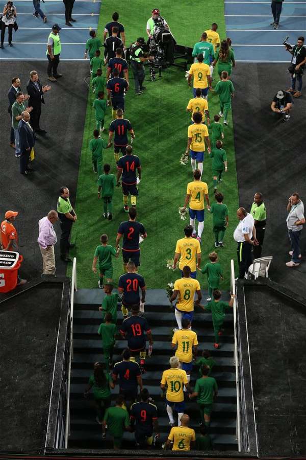 1月25日,雙方球員在比賽前入場。當(dāng)日,在巴西里約熱內(nèi)盧阿維蘭熱體育場舉行的一場足球義賽中,巴西隊以1比0戰(zhàn)勝哥倫比亞隊。本場比賽的全部收入將捐贈給沙佩科恩斯足球俱樂部。新華社記者李明攝