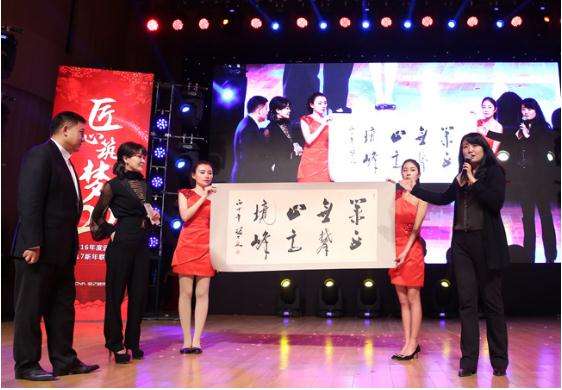 朱紅宇向業(yè)之峰贈送“業(yè)無止境 勇攀高峰”書法作品