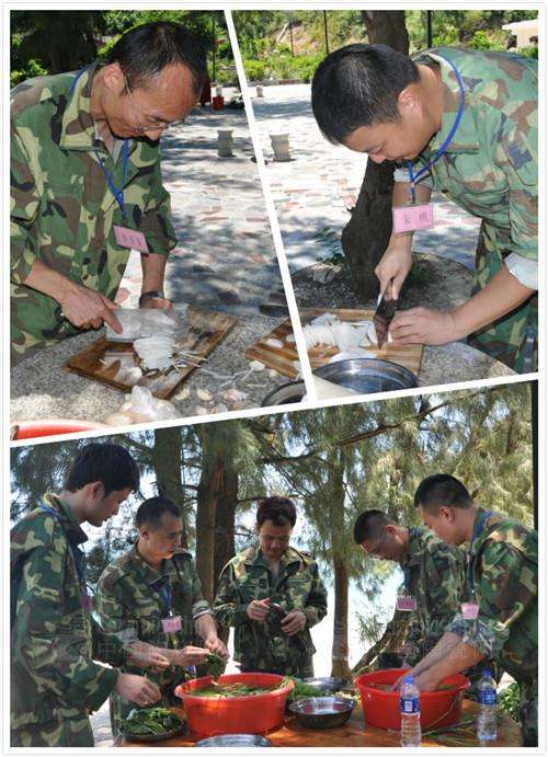 各位精英們分工協(xié)作自己動(dòng)手做飯。