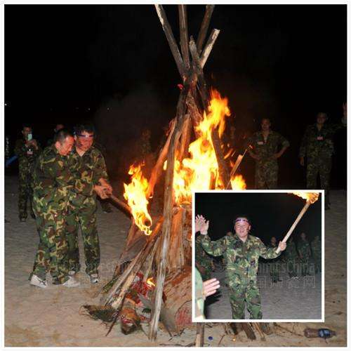 兩名隊(duì)長共同點(diǎn)燃篝火,