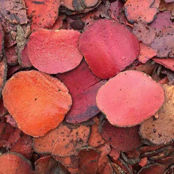 ▲薯莨切片,不同生長(zhǎng)年限和環(huán)境下的薯莨切片呈現(xiàn)不同的顏色。