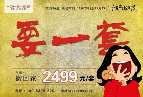 終極套餐1:20周年感恩鉅惠,特供地板2499元/套。聽?wèi)T了煎餅果子來一套的你,是否還是頭回聽說家里鋪裝的地板也能來一套?沒錯,就在宏耐時尚地板年終慶典!省去量房麻煩,剔掉討價煩惱,直接來一套打包帶走!
