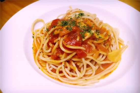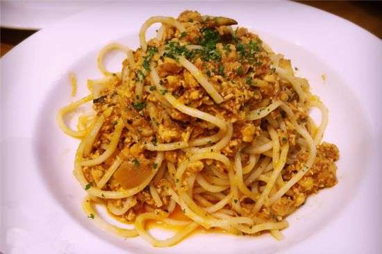 意大利面可以說是西餐品種中最接近中國人飲食習慣菜品,分別品嘗了番茄、雞肉醬、培根蘑菇奶油三種意大利面。番茄的從其鮮艷的色澤上就引誘出食欲,意面中番茄味很濃,酸酸QQ的口感個人很喜歡。雞肉醬中雞肉的分量還挺足,深合我這個無肉不歡的屬性,加上其特有的醬汁,搭配起來也別有風味。培根蘑菇奶油這樣的混合應該是偏西方飲食的了,蘑菇味道鮮美、細膩軟滑,但是不喜培根的淡淡的煙熏。簡言之,研磨時光的意面可能不是最好吃的意面,但卻是性價比最高、最親民的意面。