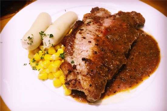 搜刮通篇菜單,最貴餐品不過38,雖然價格便宜,可在食材的選擇上卻一點不含糊,黑椒口味牛排是牛排中的經(jīng)典,精選牛里脊肉,經(jīng)過秘制黑椒腌料腌制,成品出來,恰到好處的鮮辣與鮮嫩口感相碰撞,激起舌尖無比美妙的味覺享受。魚排的口感很滑爽,肉質(zhì)無刺且多汁。蒜耳面包、披薩、草莓華夫餅也是推薦單品。