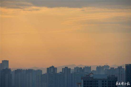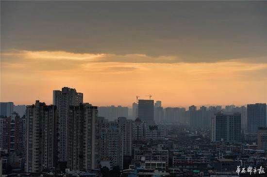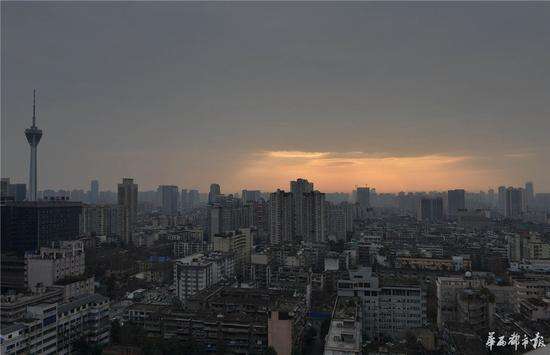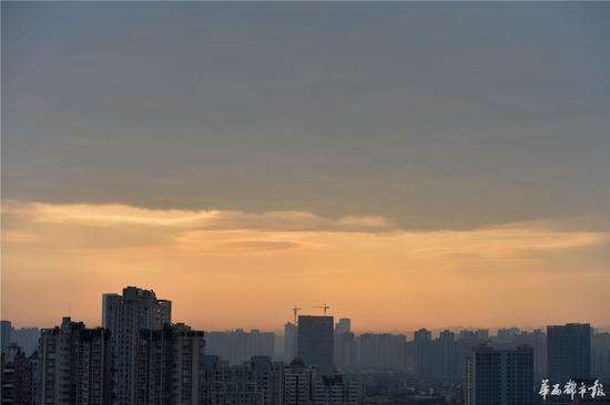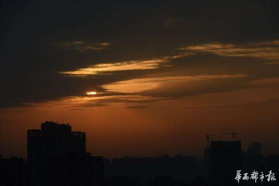 這是成都近期來難得看見的朝霞。